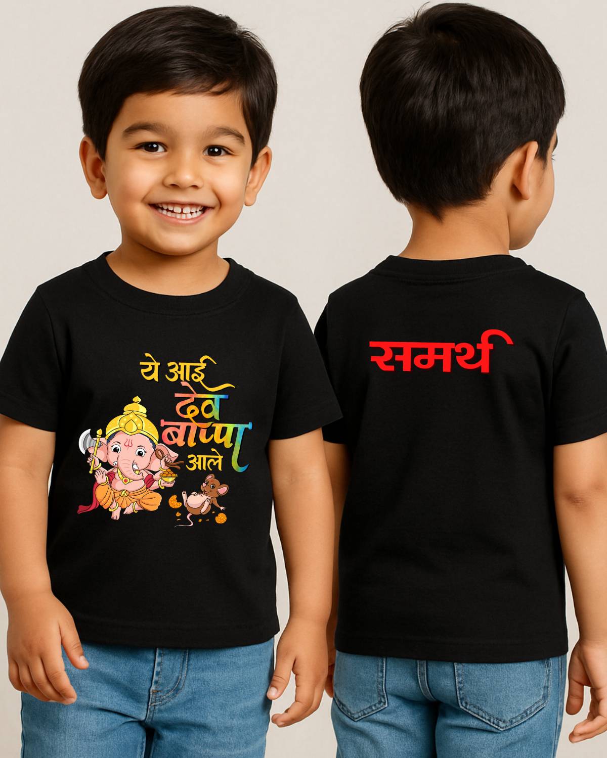 'Aai Bappa Aale' themed Ganpati t-shirt for kids. Personalize it with your child’s name. Perfect for festive celebrations.